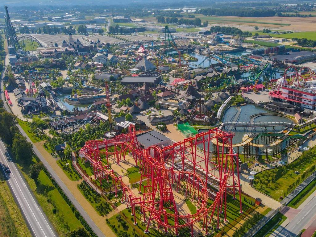 Holiday Park Zator Resort & Spa is a unique place that impresses with its location and comfort - the largest amusement park in Poland, Energylandia, is right next door! Just a short walk is enough to immerse yourself in a world of incredible fun and excitement. After a day full of excitement, you will return to our luxury resort, where complete comfort and relaxation await you. Relax in the elegant interiors, take advantage of the spa facilities and enjoy the tranquility surrounded by nature and the view of the rollercoasters!